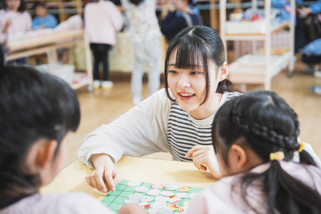 大成学園には、幼保連携型認定こども園である大成学園幼稚園、大成学園かさまこども園、大成学園いなだこども園の3園と、大成学園額田保育園、大成学園ともべ保育園の2つの保育所、あわせて5つの附属園が設置されています。こども学科の学生は、こうした恵まれた環境のもと実習に取り組み、保育現場における多様な経験を積むことができます。