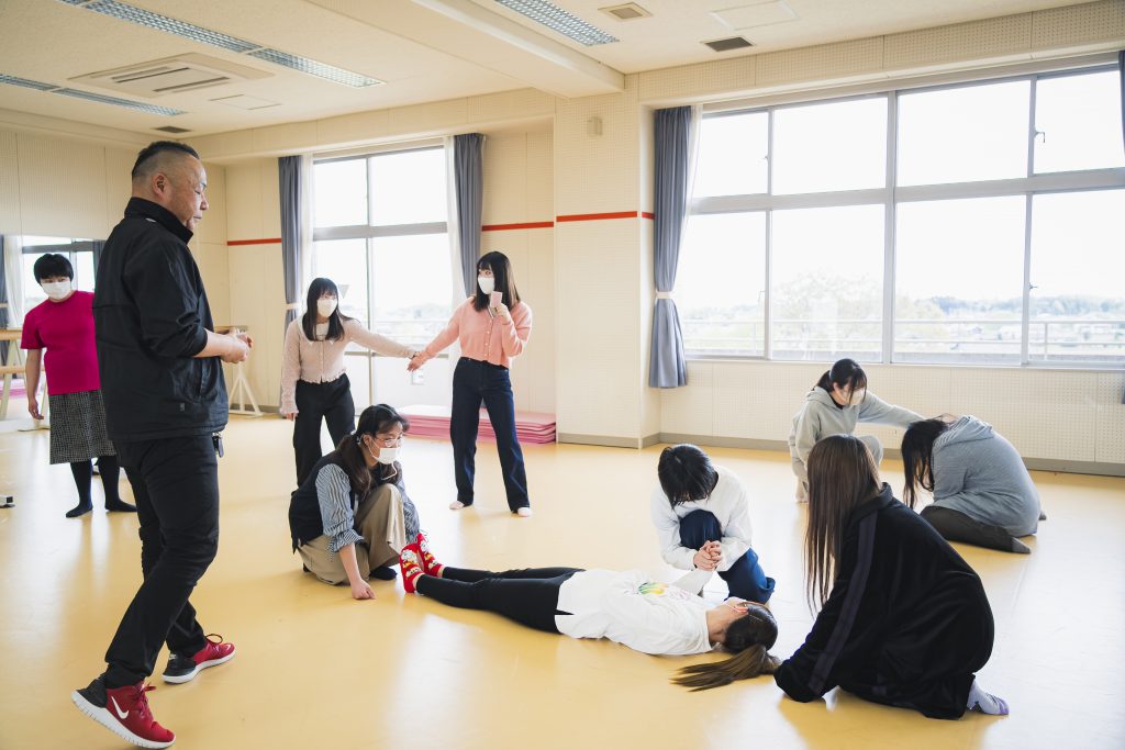 身体表現ゼミでは、学生自身の手で台本制作・照明・衣装・音響・舞台設営を行い、卒業研究として本格的な演劇公演を実施。創造力とチームワークを発揮する場となっています。