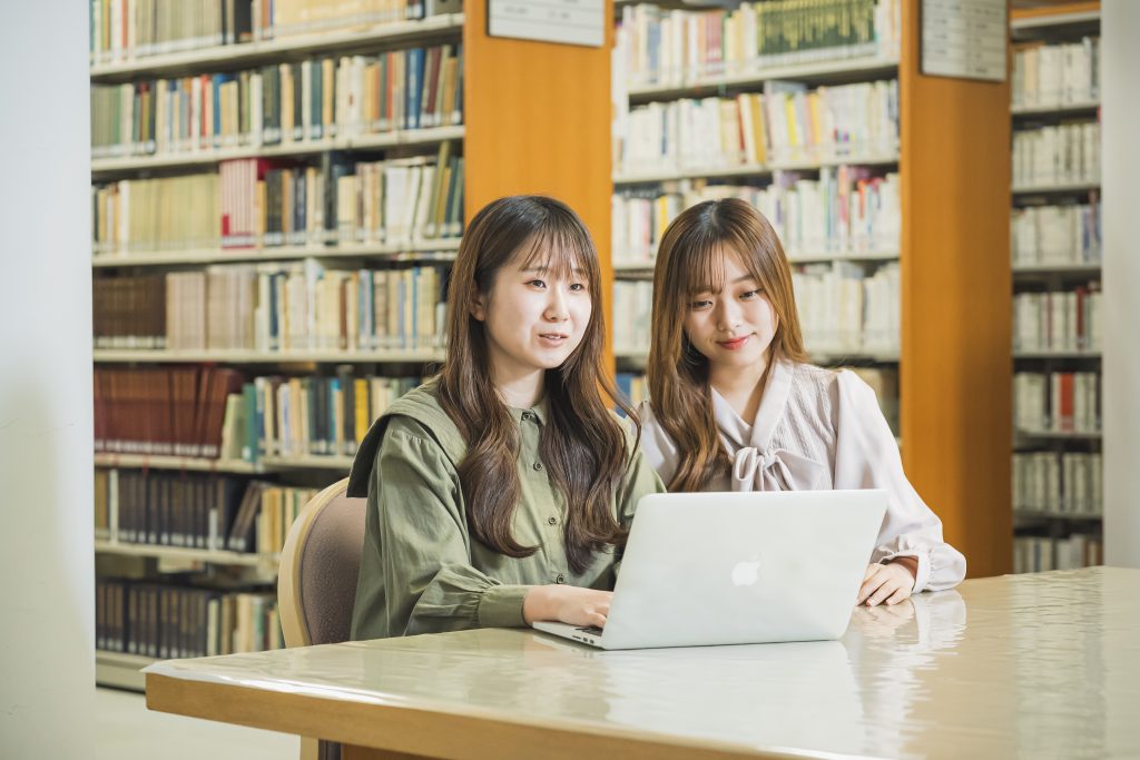 本学図書館は、学術・教育活動を支える約89,000冊の図書・資料を所蔵しています。研究や実習に役立つ専門書から、郷土資料まで幅広く取りそろえ、パソコンによる情報検索も可能です。