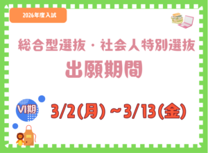 ニュース【入学者選抜情報】総合型選抜Ⅵ期・社会人特別選抜Ⅵ期 2026年4月入学に間に合います -