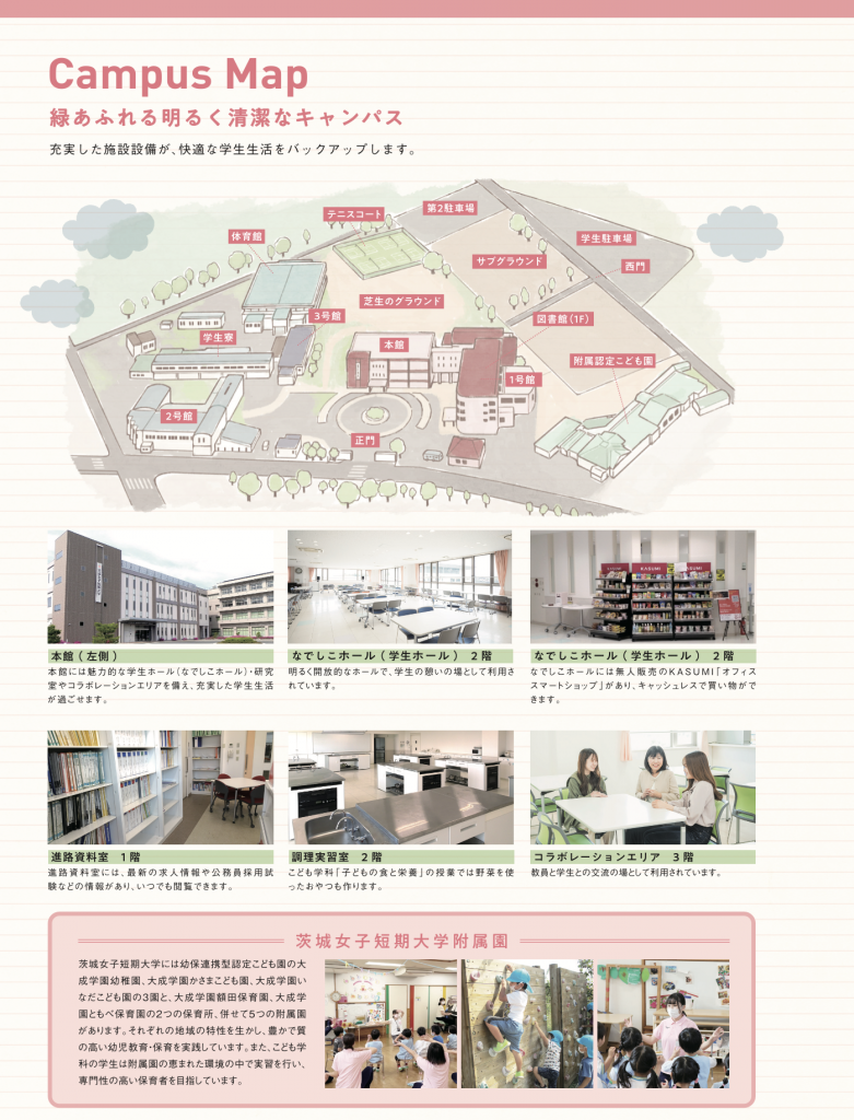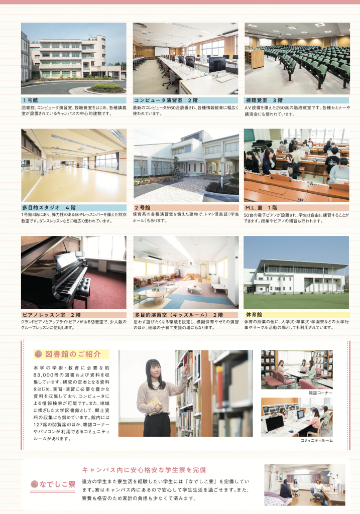 こども学科の演習室をはじめ、学生が集う「トマト倶楽部(学生ホール)」もある、学びと交流の場が集まった建物です。