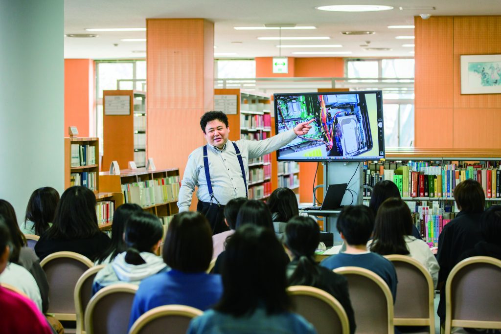 中でも「話す・聞く」を学ぶ授業では、ビブリオバトル(書評プレゼン大会)を実施。お気に入りの一冊について5分間で紹介し、聴衆が「一番読みたくなった本」に投票します。学内予選を勝ち抜いた学生は、全国大会にも出場しており、2021年にはオンライン決勝、2022年には準決勝に進出するなど、高い成果を上げています。