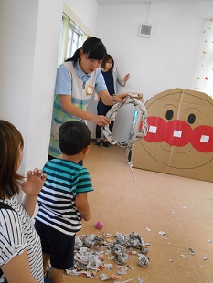 第3回 おやこひろば『ぽぽ』 2016 6/14 こども学科 6月14日(火) さわやかな好天に恵まれ、第3回おやこひろば『ぽぽ』が開催されました。 本日のテーマは「新聞紙で遊ぼう」です。ちぎったり、丸めたり、ビニール袋に入れてボールにしたりして遊びました。 大型絵本の読み聞かせを楽しみました。 アンパンマンとタッチしながら、さようならをしました。 次回は7月5日(火) 砂場で遊ぼうです。 汚れてもいい服装で、お着換えを持ってお越しください。 こども学科 前の記事へ 記事一覧へ 次の記事へ
