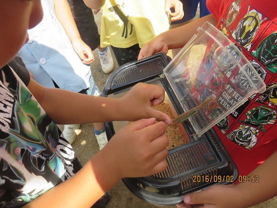 学生たちにとっては、虫との出合いも貴重な体験です。