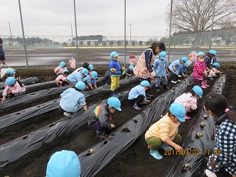 ジャガイモ植えの体験を通して、子どもたちと学生で一緒に育てる喜びが味わえるようしっかりと見守っていきたいと思います。