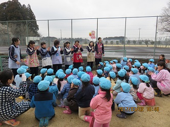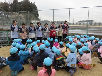保育実習Ⅰで子どもたちとかかわる体験をしてきた学生だけに、幼稚園の子どもたちとの触れ合いを楽しみにしている様子が一人一人の表情から伝わってきました。