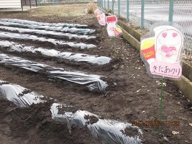 今回、植えるジャガイモは「男爵」「キタアカリ」「メークイン」「とうや」の4種類です。