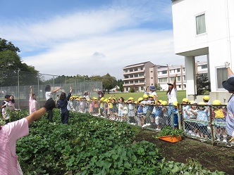 後期授業も開始され、ゼミ活動も再スタートしました。幼稚園の子どもたちは,短大の庭に遊びに来ると、必ずさつまいも畑の様子を見ています。さつまいも畑がどうなっているのか気になっているようです。