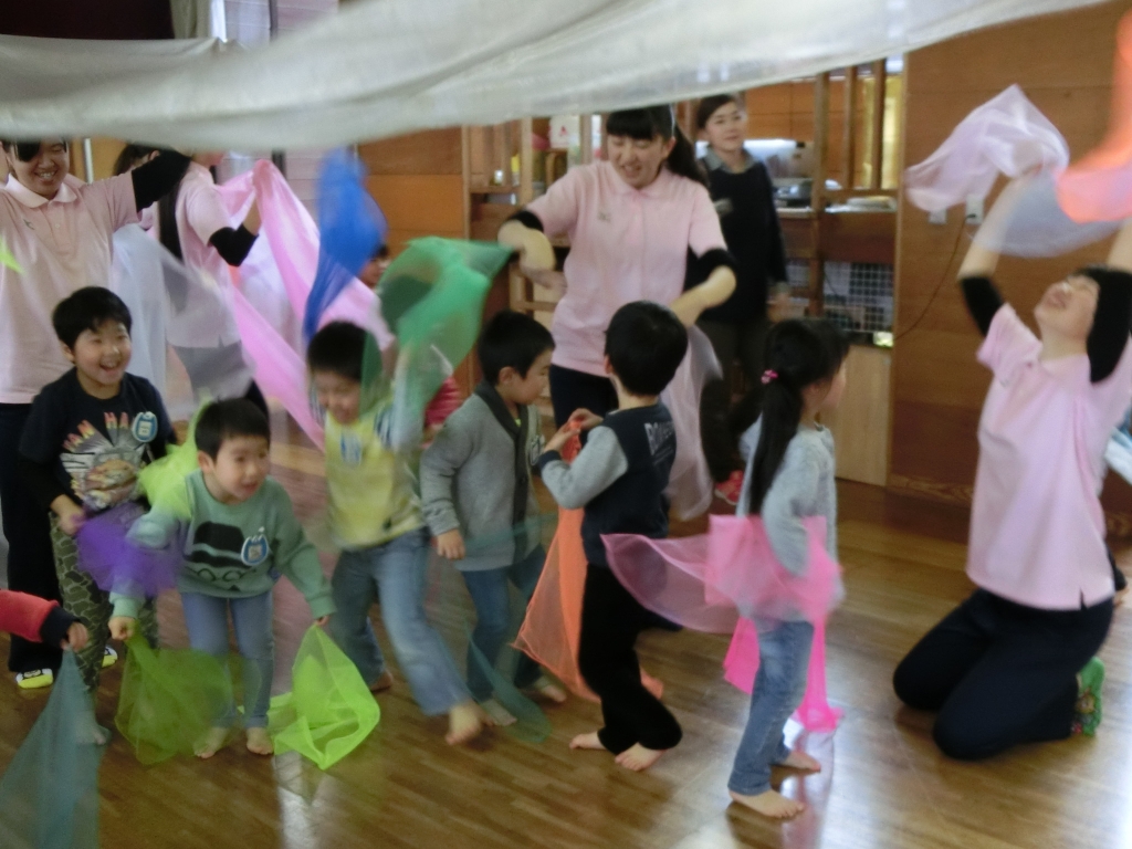 絵本の世界に入り込み、思わず自分たちも体を動かしたくなった子どもたち・・・