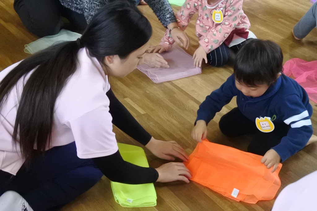 保育科の身体表現ゼミでは、大成学園額田保育園の3歳児・4歳児クラスにて、ワークショップを実践させていただきました。