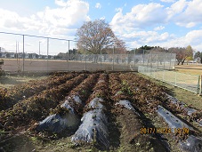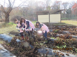 寒い季節がやってきました。短大のさつまいも畑にも霜が降り、葉も茶色に変わってきたため、慌てて日程を調整し、さつまいも掘りを実施しました。
