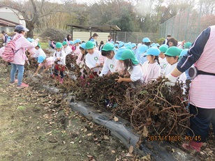 掘る前の作業で一番大変なのは、ツルを運び出す作業です! 子どもたちがみんなで力を合わせ、あっという間にきれいにかたづけることが出来ました。