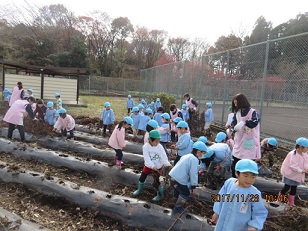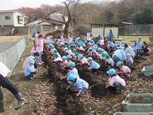 さあ!いよいよさつまいもを掘り起こす番が来ました! わくわくした気持ちでいっぱいの子どもたちでした。