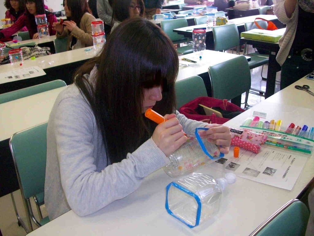 保育内容演習(環境)の授業で、ペットボトルを利用して種まきをしました。