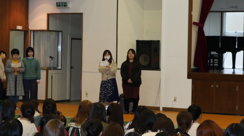 新入生歓迎会 2019 4/09 ニュース 4月8日の5限に学友会による新入生歓迎会が行われました。「〇×クイズ」や「じゃんけん列車」を通して、表現文化学科・保育科両学科の新1年生と2年生との親睦を図ることができました。また、ダンスパフォーマンスを通して、沢山の学生の笑顔が見られ、学生同士有意義な時間を過ごすことができました。 ニュース 前の記事へ 記事一覧へ 次の記事へ