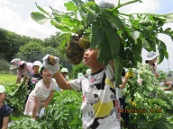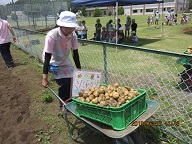 持ちきれないじゃがいもは、手伝ってもらいました。学生も、日頃なかなか土に触れる機会がないので、子ども以上に汚れも気にならないほど大はしゃぎ!