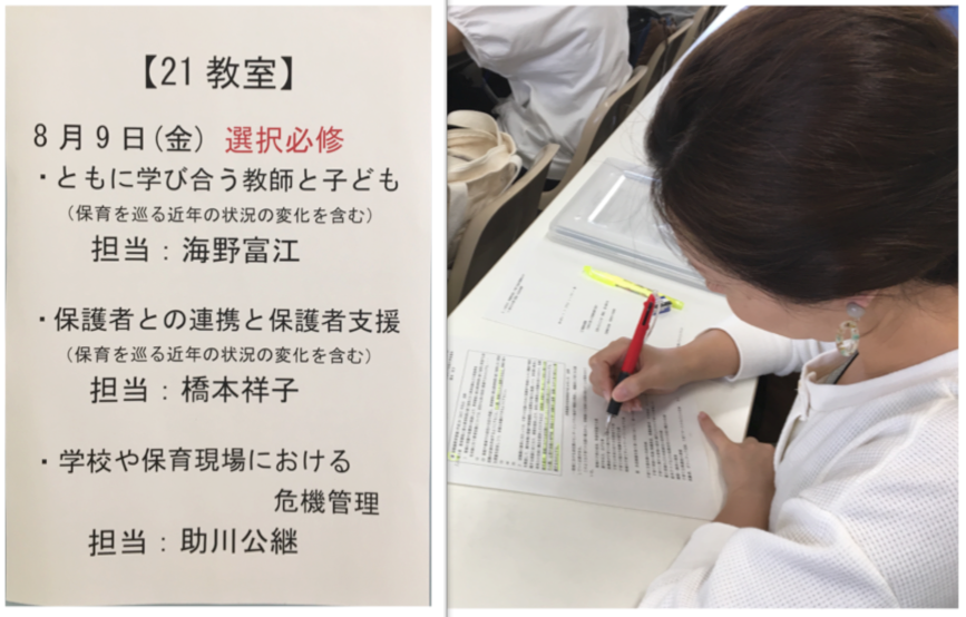 教員免許状更新講習 2019 8/09 ニュース 8月8日(木)より、今年度の教員免許状更新講習がはじまりました。猛暑の中多くの受講生が早朝より来学し熱心に取り組んでいます。 本学では、幼児教育の分野を重点的に取り扱うことから、幼稚園教諭、保育教諭や保育士の方々の参加が多いようです。ぜひ学んだことを今後の実践に生かしていっていただきたいと思います。 ニュース 前の記事へ 記事一覧へ 次の記事へ