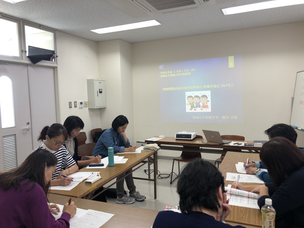 10月10日(木)、「発達障害のある幼児の特性と支援方法について」公開講座を実施しました。クイズ形式で障害の特性、個に応じた支援方法などを検討しました。参加した方々の熱心な取り組みが印象に残りました。
