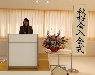 また,入会生の代表より「秋桜会での新たな出会いや経験を通じて、社会人として力強く成長していきたいと思います。」との「入会のことば」がありました。