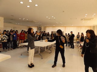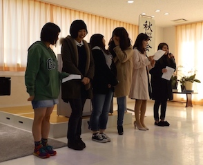 2月9日(火) 11:30から2年生の皆さんを招いて同窓会秋桜会入会式・交流会を「なでしこホール」にて行いました。