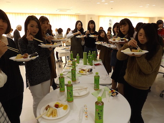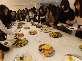 会食はバイキング形式で、先生方を囲みグループで楽しい会話に花が咲きました。