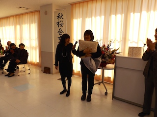 「学生であった皆さんは、今までは自分のことで精いっぱいであったと思いますが、これからは「人の為に役に立つ人」となれるように心掛けて社会に出てほしいと願っております。」とのお言葉でした。