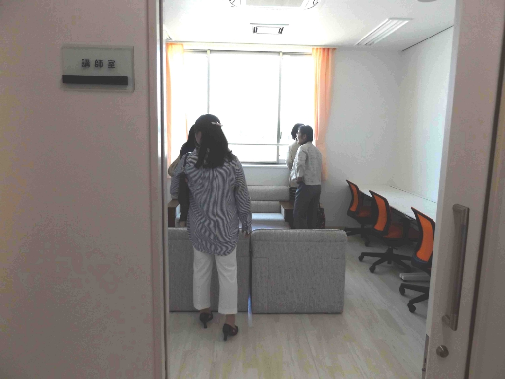 総会終了後、出席された方々を新本館の3階、2階へと案内しながら、交流会会場の「なでしこホール」へ。