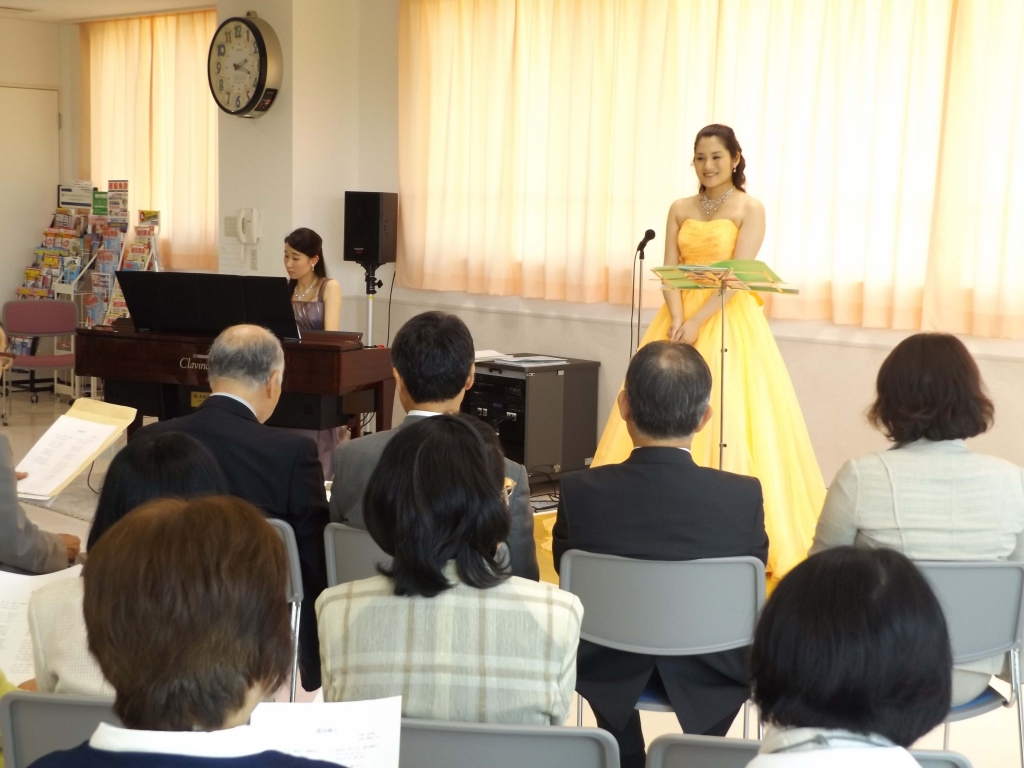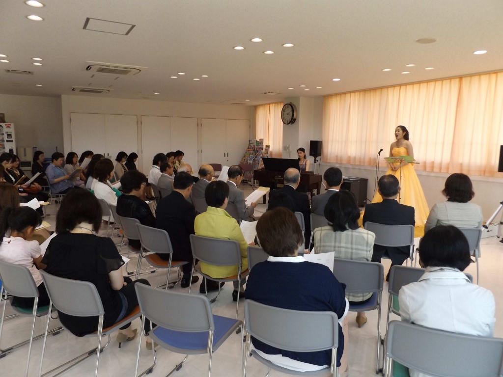今回のアトラクションは、同窓会で寄贈したヤマハクラビノーバのお披露目も兼ねて、 オペラ歌手の宇佐美悠里(ゆり)さんとピアニストの伊藤真理さんにお願いしました。 ソプラノの美しい歌声、感情のこもった歌声に酔いしれました。 最後にみんなで《花は咲く》を歌いました。涙した人が多かった・・・ 交流会の最後は校歌斉唱。 生のピアノ伴奏で聞く校歌はいつもより、より一層素敵な歌に聞こえました。