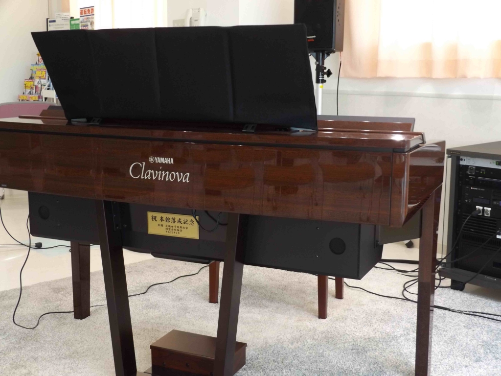 平成25年度事業報告の1つとしまして、新本館落成のお祝いに「ヤマハクラビノーバ一式及びカーペット」を寄贈いたしました。 学生の集う「なでしこホール」に設置されております。講義及び学友会活動等で大いに役立ち、素敵な音楽が奏でられますよう希望します。