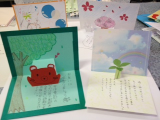 手作りカードで被災地に気持ちを届けました。 2012 7/06 表現文化学科 保育科1年生が「東日本大震災被災地に対するボランティア活動と訪問」の宿泊研修を6月18日(月)から19日(火)に行いました。ことばの芸術学科でも、現地に参加はできませんでしたが、手作りカードにそれぞれの被災地に向けた思いをつづり、保育科のみなさんに気持ちを届けてもらうことにしました。ことばと芸術を組み合わせた一枚一枚のカードに学生それぞれの想いが込められています。 表現文化学科 前の記事へ 記事一覧へ 次の記事へ