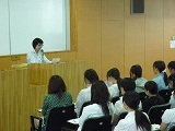 卒園生のエピソードに感動! 2012 7/23 こども学科 7月20日(金)、児童養護施設「みどり園」の主任保育士、加藤木先生を講師にお迎えして、実習事前オリエンテーションを行いました。加藤木先生から具体的に施設の仕事内容や実習の心構えを伺うことができて、とても勉強になりました。さらに施設の卒園生の、夢をあきらめない挑戦のエピソードを伺い、学生たちはみな感動していたようです。ある学生は、「施設での子どもたちの生活を豊かにするということは、その後の子どもたちの人生を豊かにしていくことだと思いました。」と感想を寄せていました。 こども学科 前の記事へ 記事一覧へ 次の記事へ