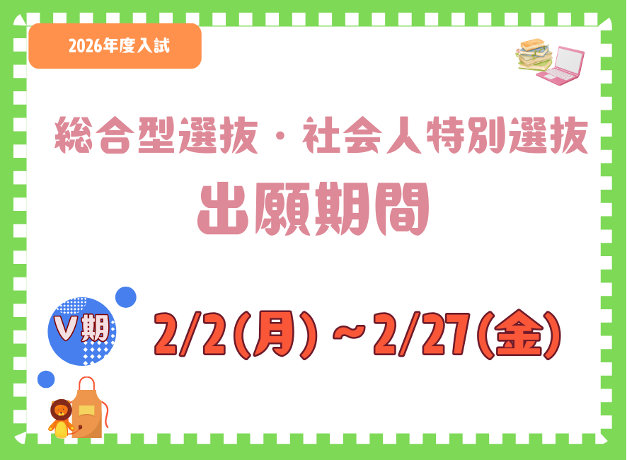 2月2日(月)から2月27日(金)まで総合型選抜Ⅴ期社会人特別選抜Ⅴ期の出願を受付けています。