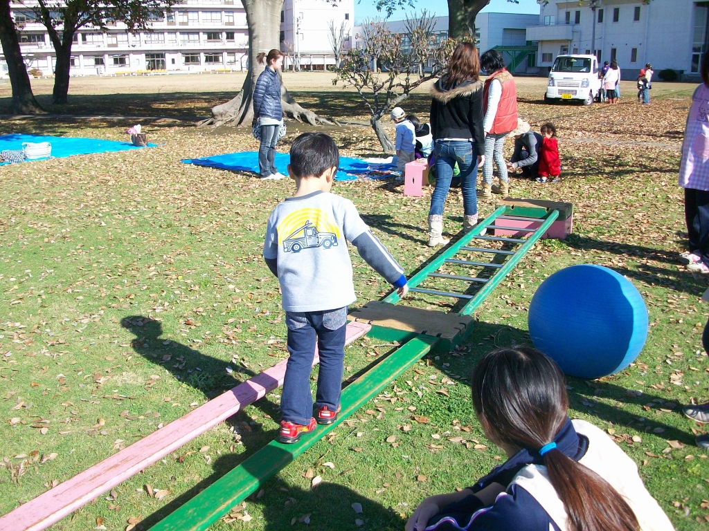 第9回おやこひろば『ぽぽ』 11月20日 2012 11/22 こども学科 雲一つ無い秋晴れのもと,芝生広場に未就園児とそのご家族が集まりました。大成学園幼稚園からお借りしてきた巧技台やバランスボールで,思い切り体を動かすことを楽しみました。 こども学科 前の記事へ 記事一覧へ 次の記事へ