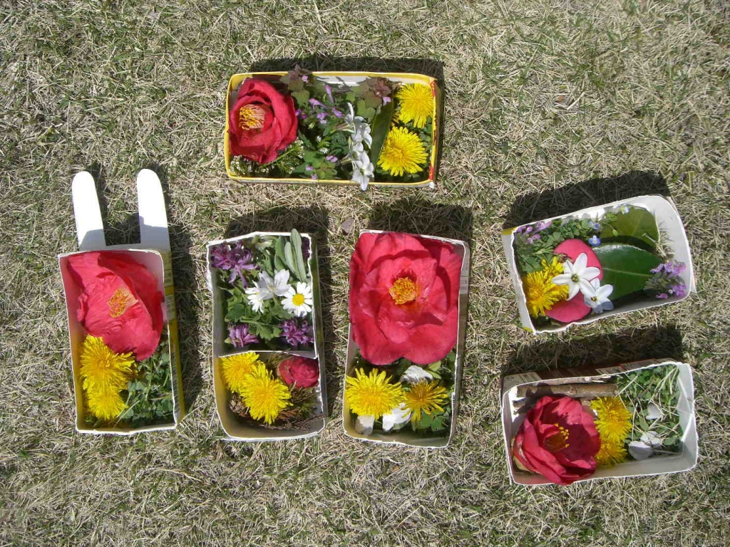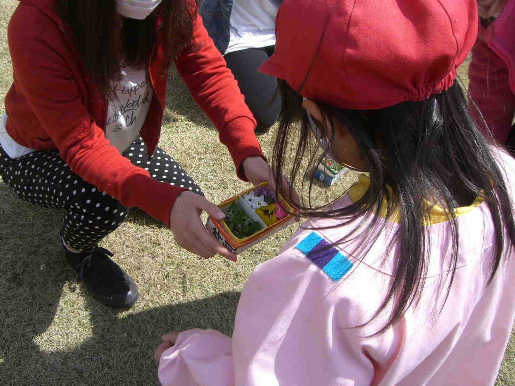 様々な春の野草を摘んで、かわいいお弁当ができました。