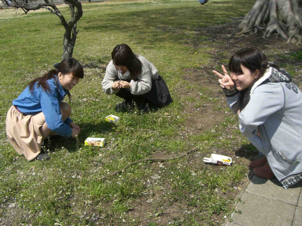 ちょうど短大の運動場に遊びに来た幼稚園の子どもたちに見てもらいました。