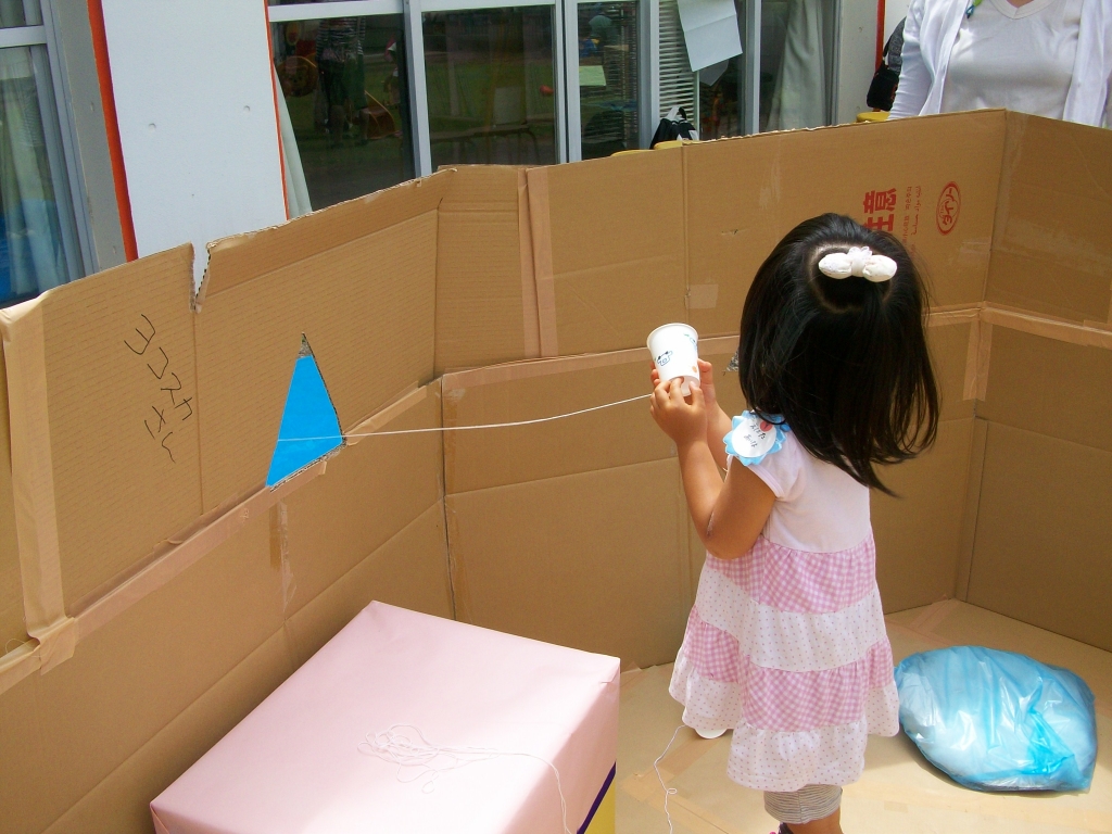 第2回おやこひろば“ぽぽ” 2013 5/28 こども学科 さわやかな風が吹く中,第2回おやこひろば“ぽぽ”が開催されました。 バルーン(カラービニール袋を貼り合わせて作った)の風になびく音に誘われ,カラフルな光の中を走り抜けたり,芝生の上に敷いて転がったりする姿が見られました。 ふわふわの小麦粉粘土の感触を十分に味わいながらじっくりと遊べるコーナーや,糸電話の不思議な感覚を体験できるお家もありました。 学生や教員も一人一人の子どもたちの心や体の動きに寄り添って,楽しさに共感していました。 次回は7月2日 火曜日です。 こども学科 前の記事へ 記事一覧へ 次の記事へ