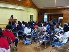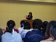 読み聞かせ講座 2013 10/24 こども学科 瓜連おはなしの会ルピナスによる「おとうさん・おかあさんのための読み聞かせ連続講座」の第1回が,大成学園幼稚園で開催されました。今回の講師は,ストーリーテラーの藤井いづみ先生(まめの木文庫主宰・白百合女子大学 児童文化学科講師)です。保育科の学生も講座を受けさせて頂きました。「絵本は読んでもらうもの…音としての言葉の楽しさがある。声や絵を通して五感が育っていく…」という話を伺い,わらべうたを一緒に歌ったり,読み聞かせや素話に聞き入ったりし,読み聞かせの素晴らしさを感じることができました。 こども学科 前の記事へ 記事一覧へ 次の記事へ