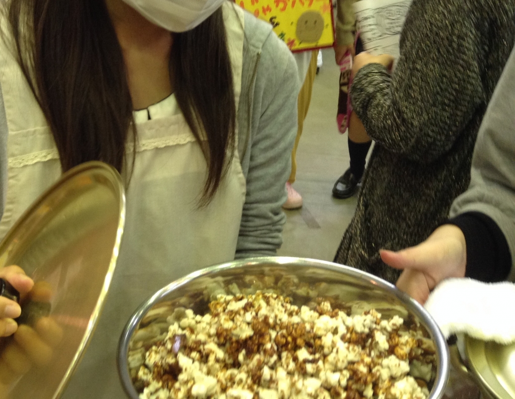 ことばの芸術学科では、模擬店として体育館でポップコーンショップを出店しました。