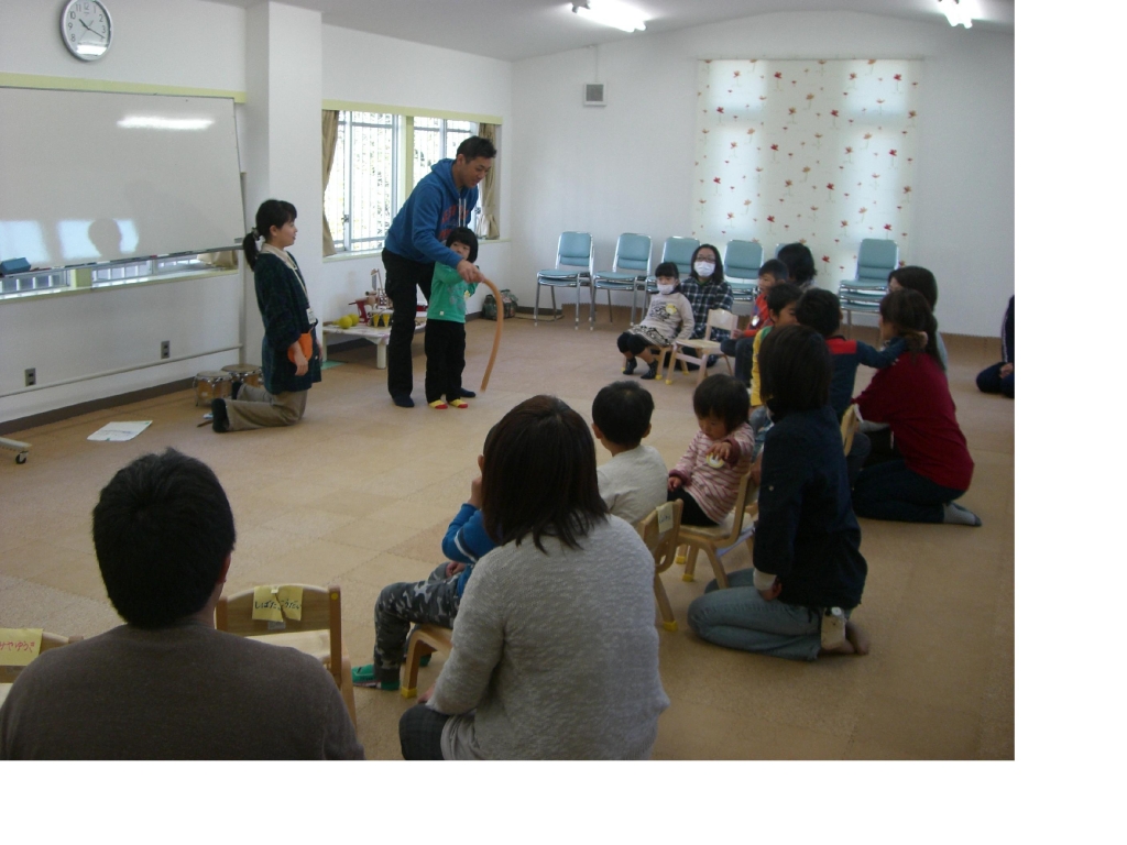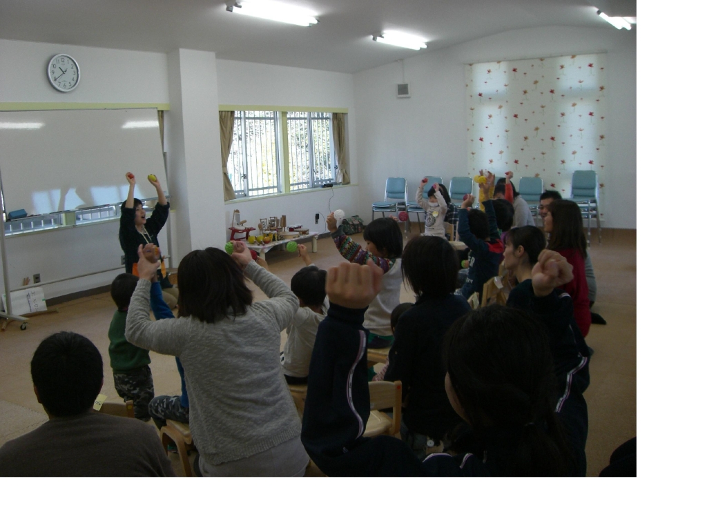 11月30日(土)に、音楽療法士の馬立明美先生やこども音楽療育士の資格取得を目指す学生たちとたのしい音楽あそびを開催しました。