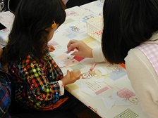 クリスマスブーツの模様を付けたり,サンタさんの顔を描いたり…お家の方や短大の学生と一緒に,自分できるところをやってみました。