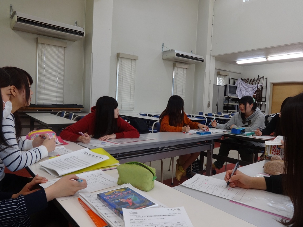ゼミナール風景 2014 4/17 こども学科 授業開始から2週間が経とうとしています。2年生は各自が興味のある分野に分かれてゼミナールの授業を受けています。音楽分野のゼミナールでは、保育園の訪問や親子の音楽活動のための準備を始めました。季節にあった曲や絵本にあわせた効果音、選曲など意見を出し合っています。子どもたちの前で演奏できる日を楽しみに練習を重ねていこうと思います。 こども学科 前の記事へ 記事一覧へ 次の記事へ