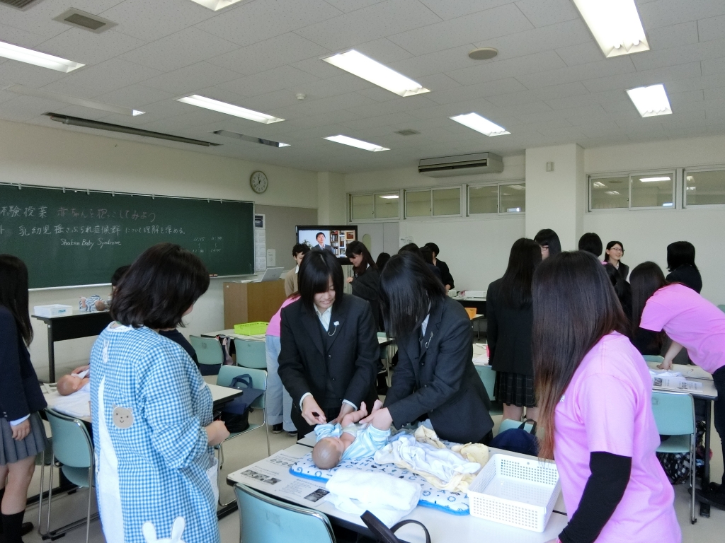 こちらの教室では 本物そっくりの赤ちゃんに話しかけながら おむつ替えや 着替えにチャレンジ!