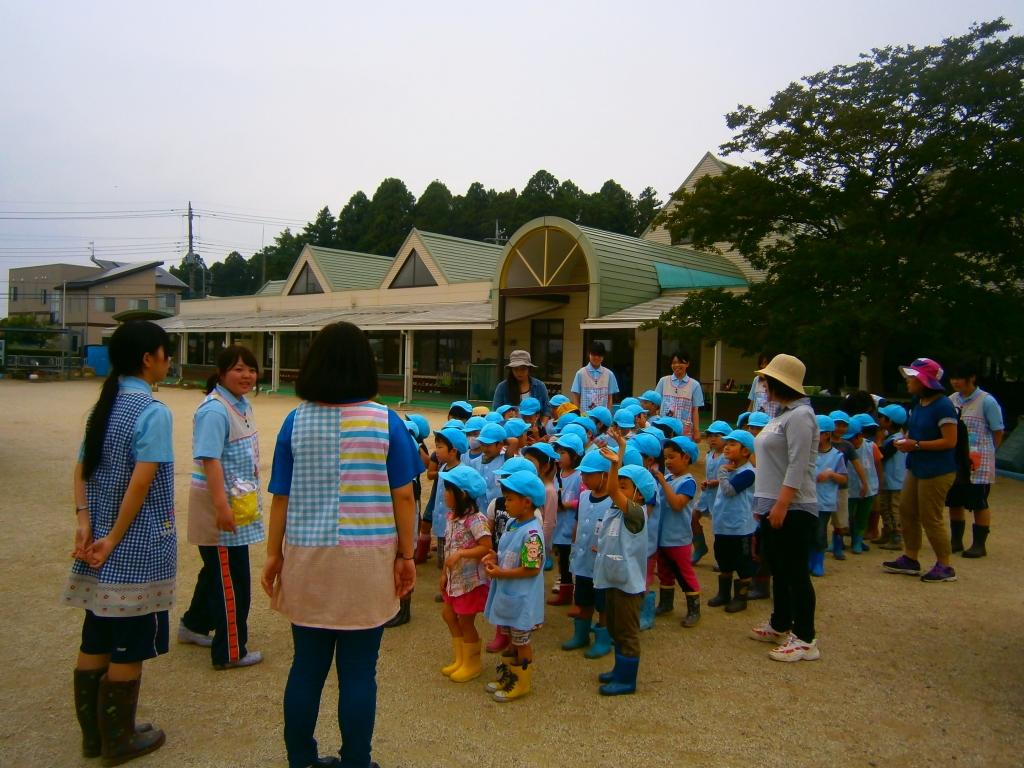 大成学園幼稚園の子どもたちもこの活動のために長靴を履いて待っていてくれました。