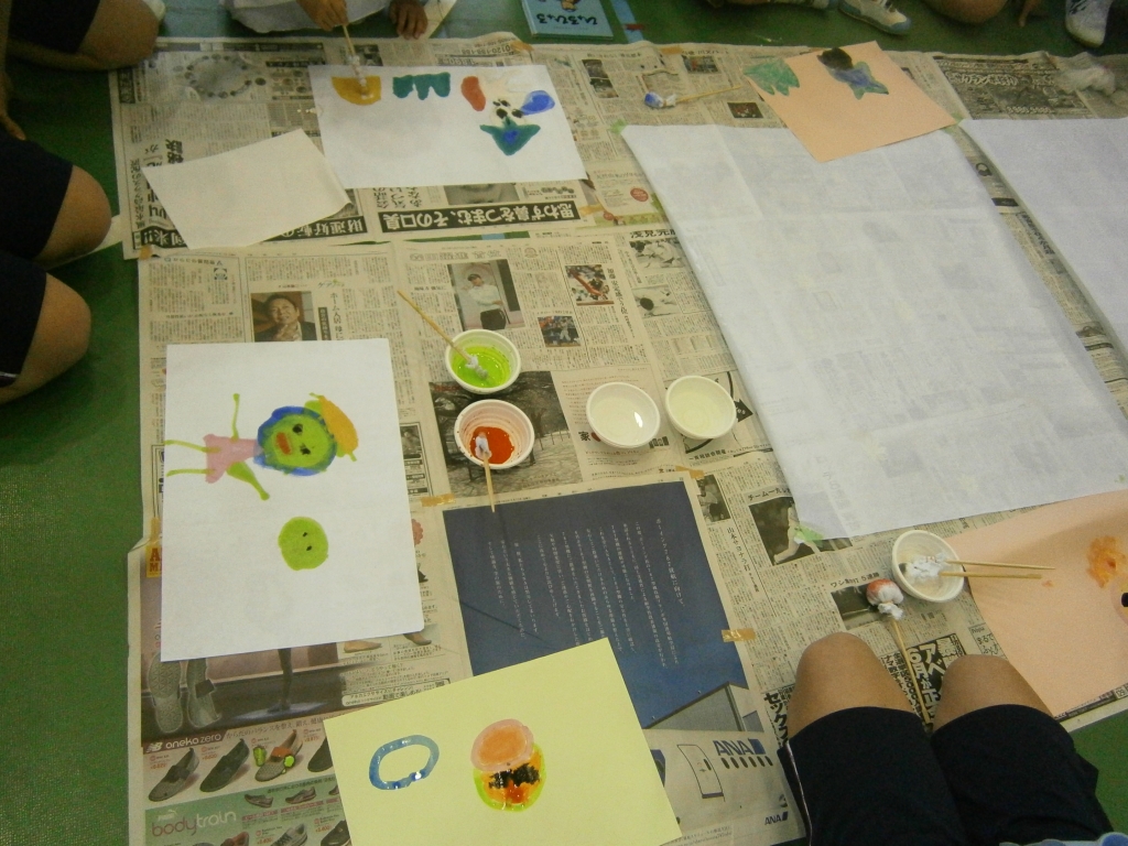 読み聞かせが終わると、さっそく思い思いのかっぱを描きはじめました。