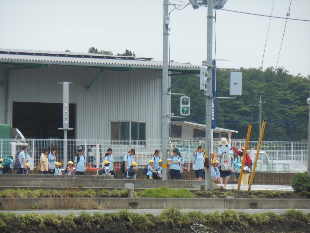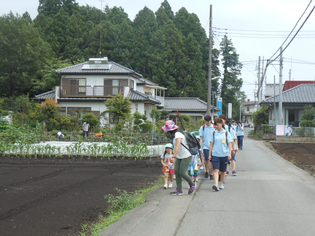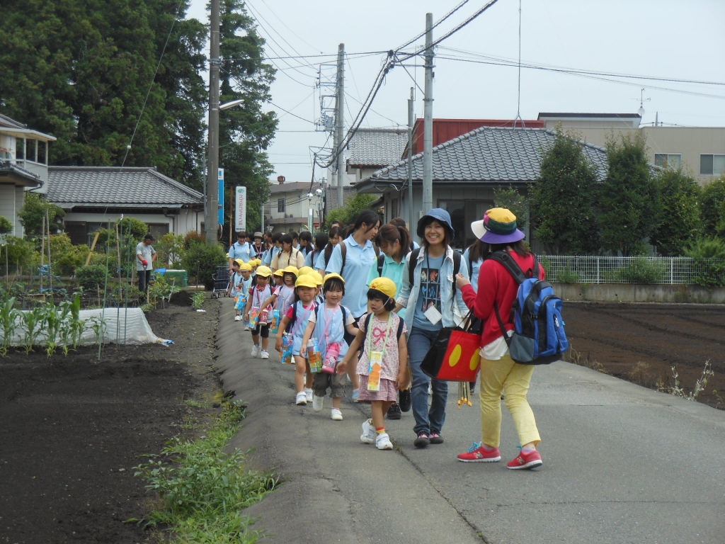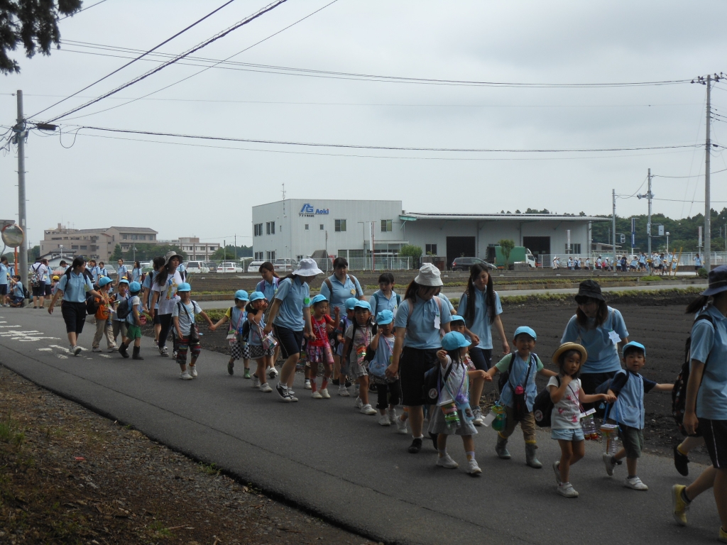 子どもたちは、実習生のお姉さんたちと一緒に手をしっかりつないで、目的地まで頑張って歩きました。