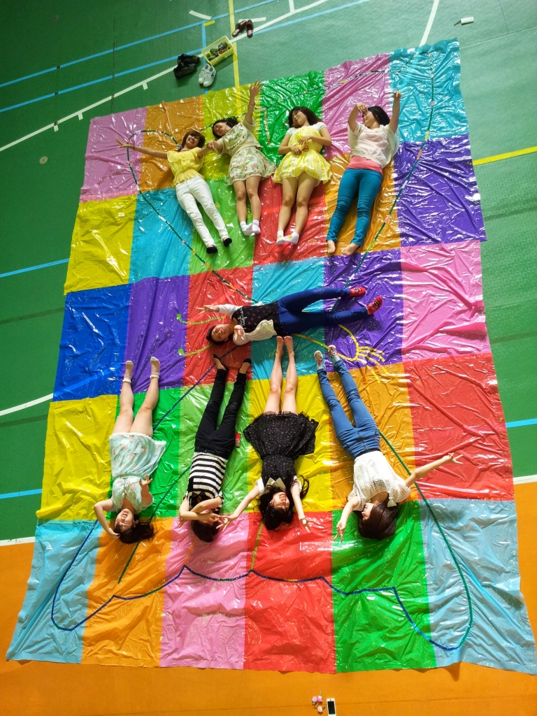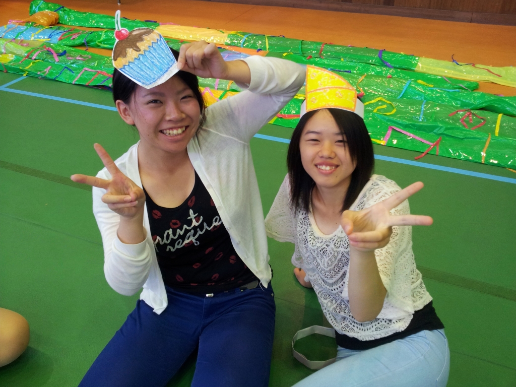 いっしょにあそぼう【準備】 2014 7/04 こども学科 保育科1年生恒例の「いっしょにあそぼう」今度は三歳児さんといっしょにあそぼうです。本番に向けて準備にも力が入ってきました。今回はなにをつくってあそぼうかな?「この絵、気に入ってくれるかな…?」 みんな笑顔ですが、作っているときは真剣です。 今日は晴れたので、作った「???」を屋外で試しにあそんでみます。 とても大きいみたいです! ??? あれ?見たことのある「顔」かも 準備は整ったようです。 本番で、子どもたちといっしょにあそぶのが楽しみになってきました! こども学科 前の記事へ 記事一覧へ 次の記事へ