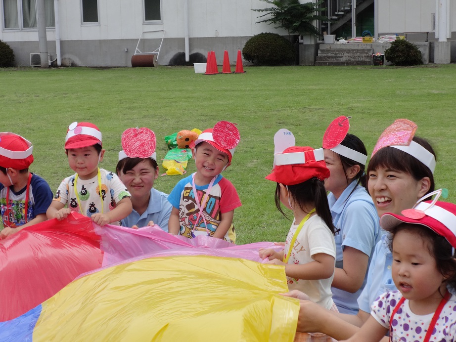 子どもたちは、自分のお面を食べさせてあげるなど、遊びで体験したものが優しいしぐさに表れていて、ほのぼのとした光景でした。