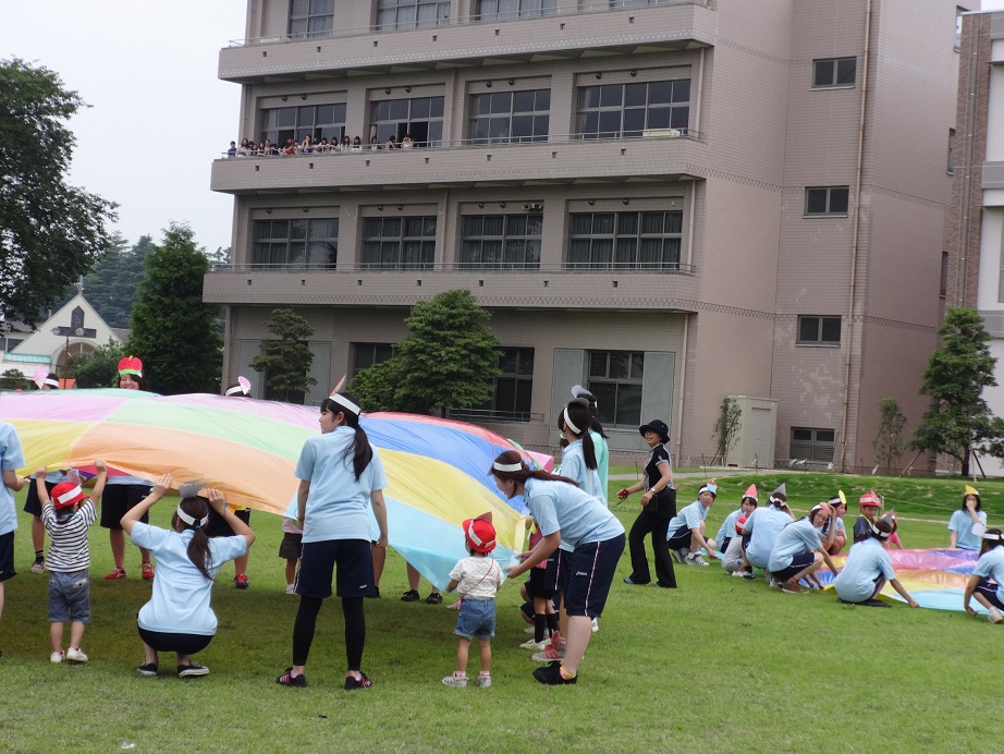 「いっしょにあそぼう」が終わって、子どもたちが大成学園幼稚園に帰るときに、幼稚園の先生のおなかにも、「はらぺこあおむし」発見!