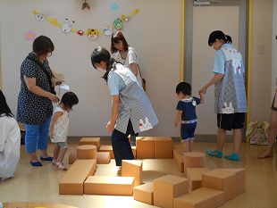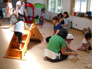 戸外で遊んだ後は、涼しいお部屋の中でじっくりゆっくり遊ぶ姿も見られました。