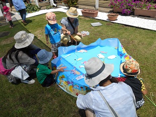 7月15日(火)暑い日になりましたが、つりやシャボン玉、水鉄砲などの水遊びを満喫しました。